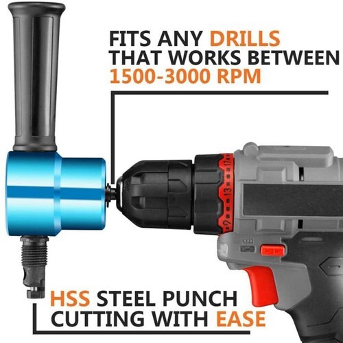 - Double Head Sheet Nibbler Metal Cutter Drill Attachment Straight Curve Cutting