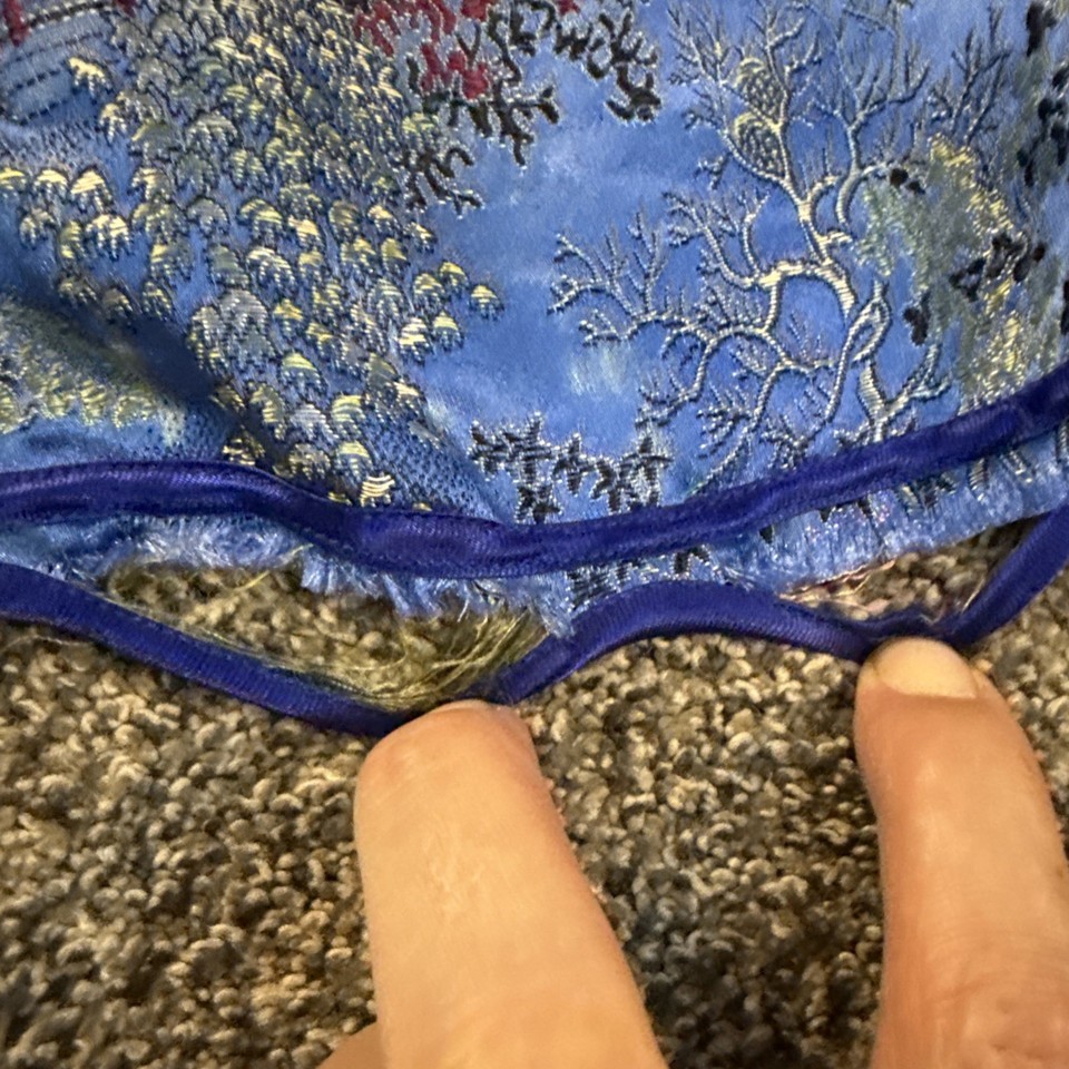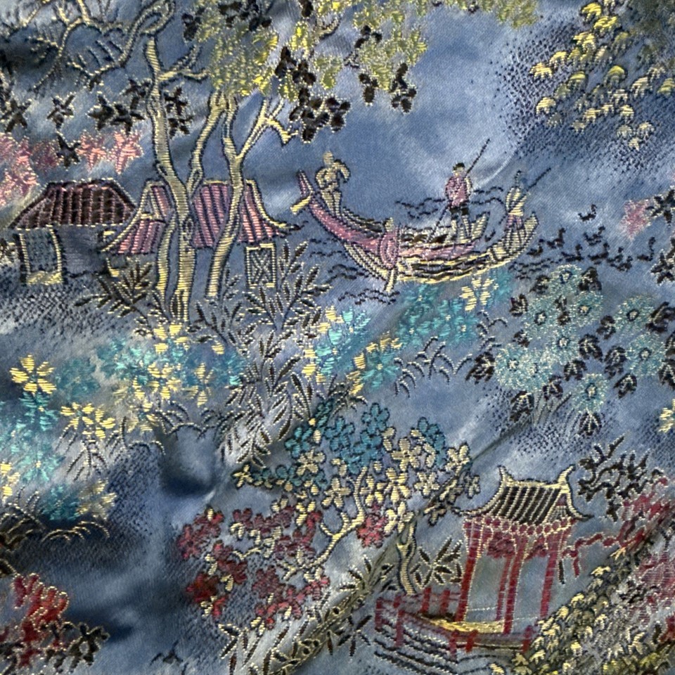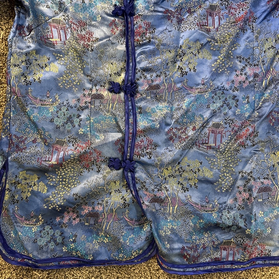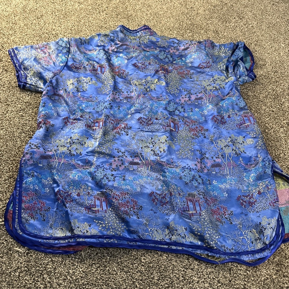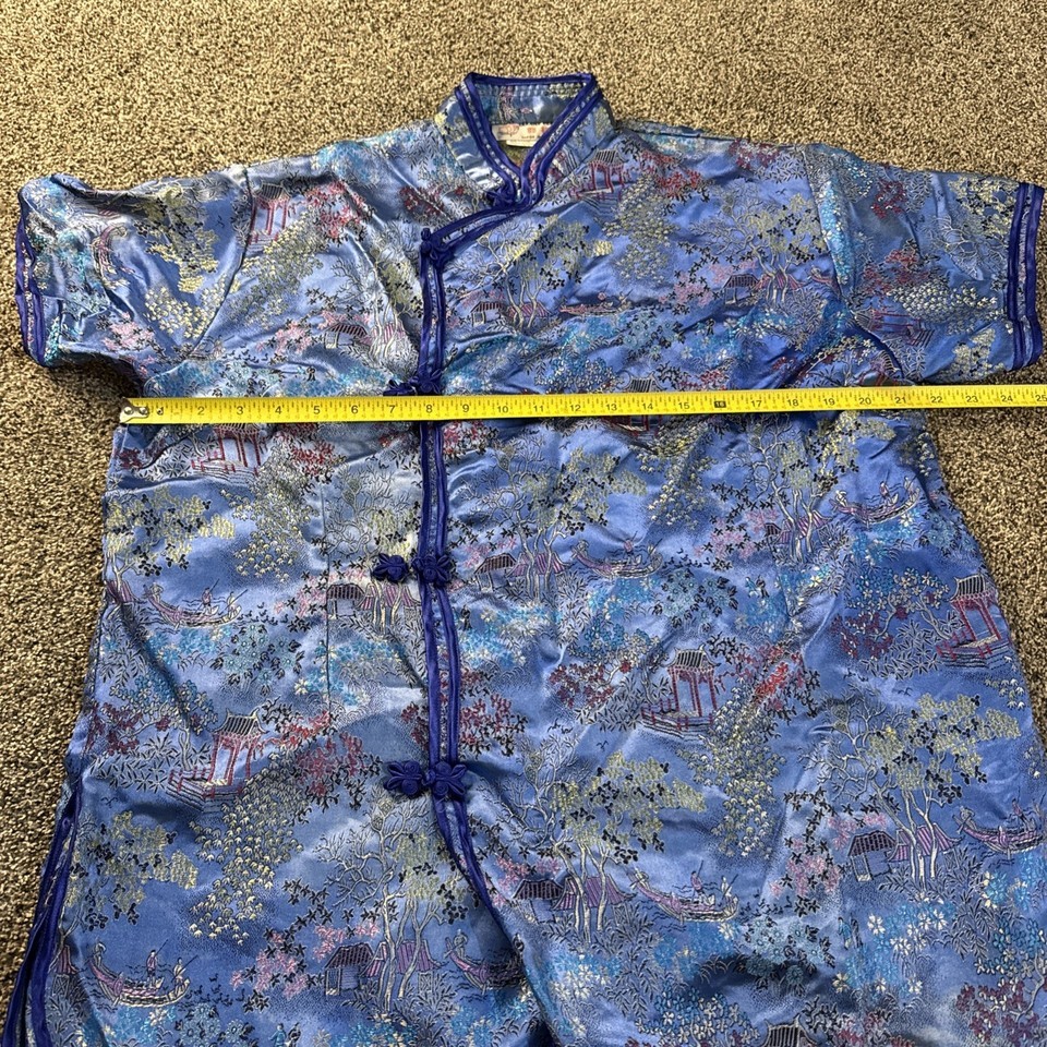 - Double Peach Chinese Cheongsam Style Shirt Blouse Top (L) Large Blue Snap Button