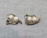 - Double Pearl/Diamond Costume Jewelry Clip On Earrings, Silver Tone Vintage