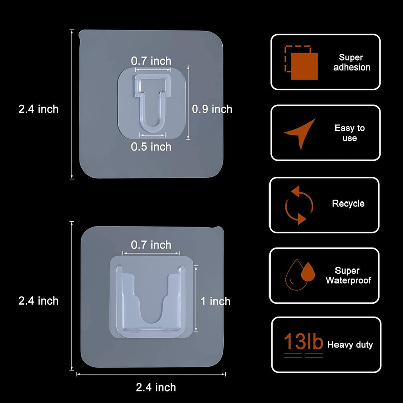 Double Sided Adhesive Hooks|20 Pack + 4 Pack Wall Hanger Holder|13.2Lb Max | Sel