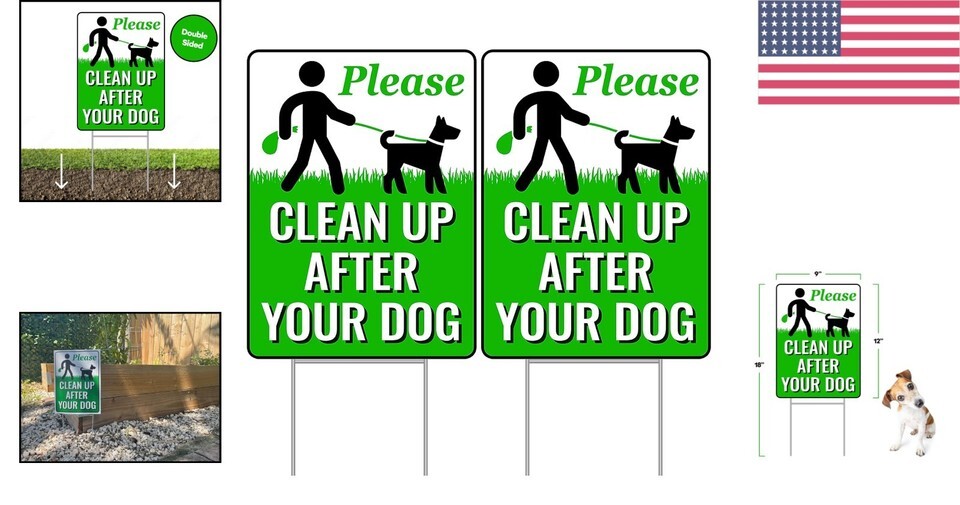 - Double-Sided Outdoor Dog Waste Signs - 2-Pack with Easy Installation H-Stake