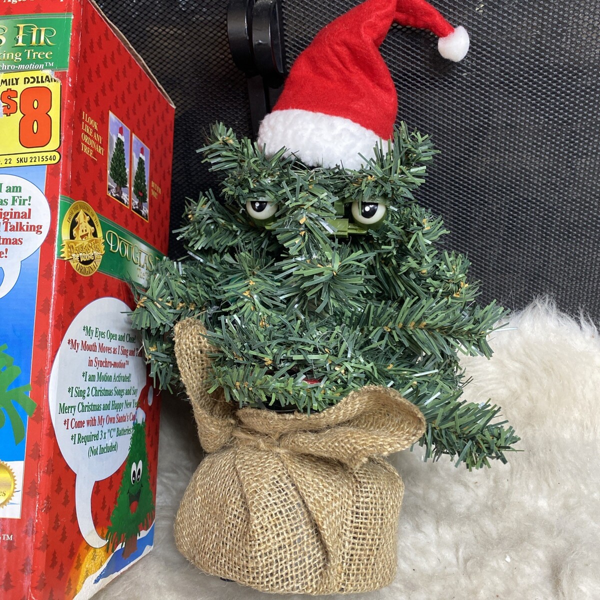 - Douglas Fir Talking Singing Dancing Christmas Tree 12" Burlap Sack /PLZ Read