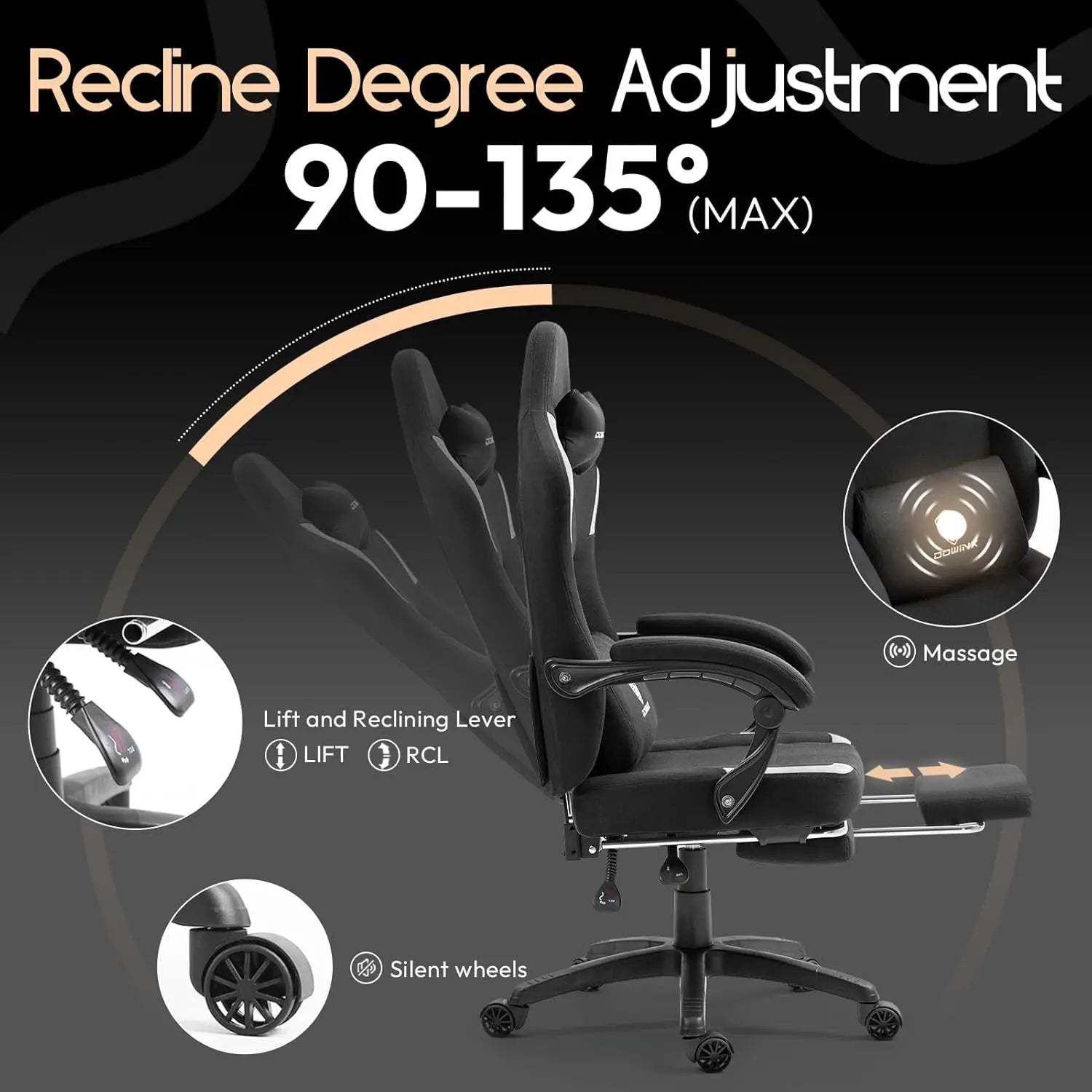 - Dowinx Fabric Gaming Chair with Massage Lumbar Support and Footrest