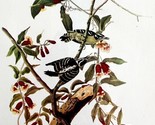 Downy Woodpecker Bird Lithograph 1950 Audubon Antique Art Print DWP6B