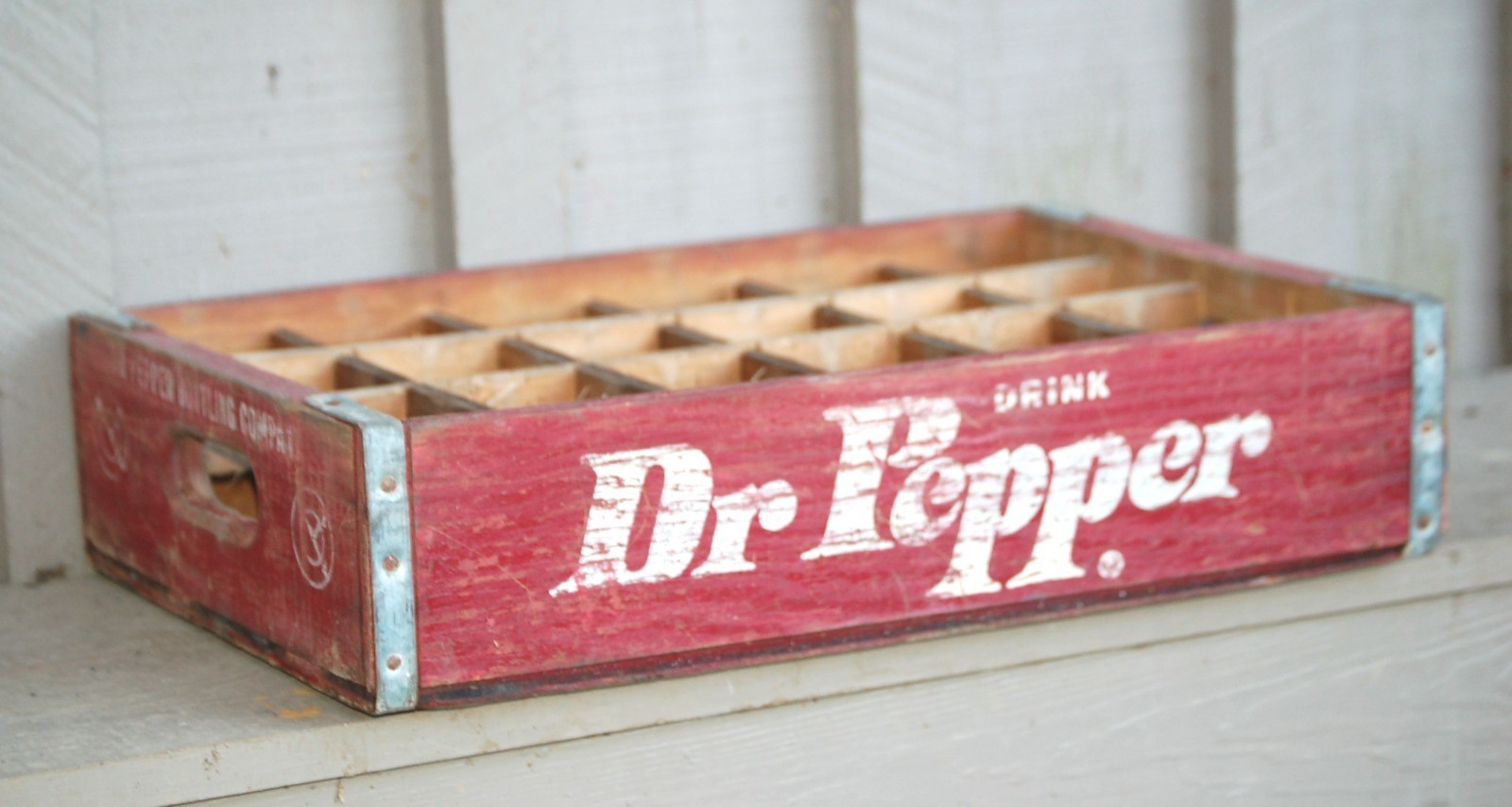 Dr. Pepper Red Wooden Soda Pop Bottle Crate Carrier 24 Slot Box 10 2 4