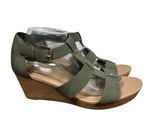 Dr. Scholl's Barton Wedge Sandals Size 10W Olive Green Faux Leather Strappy Comfort