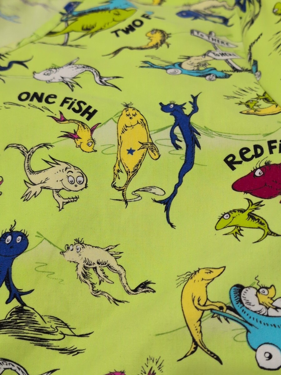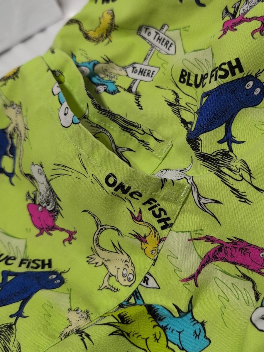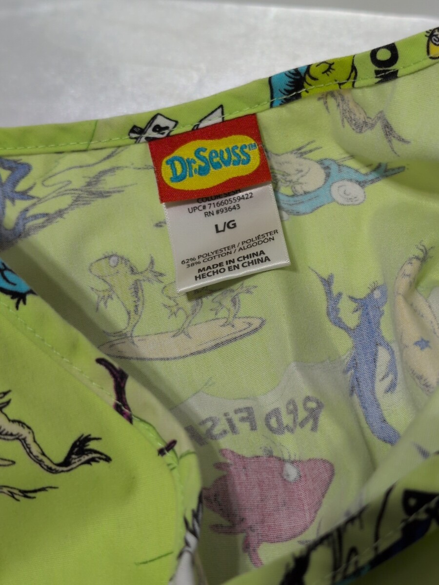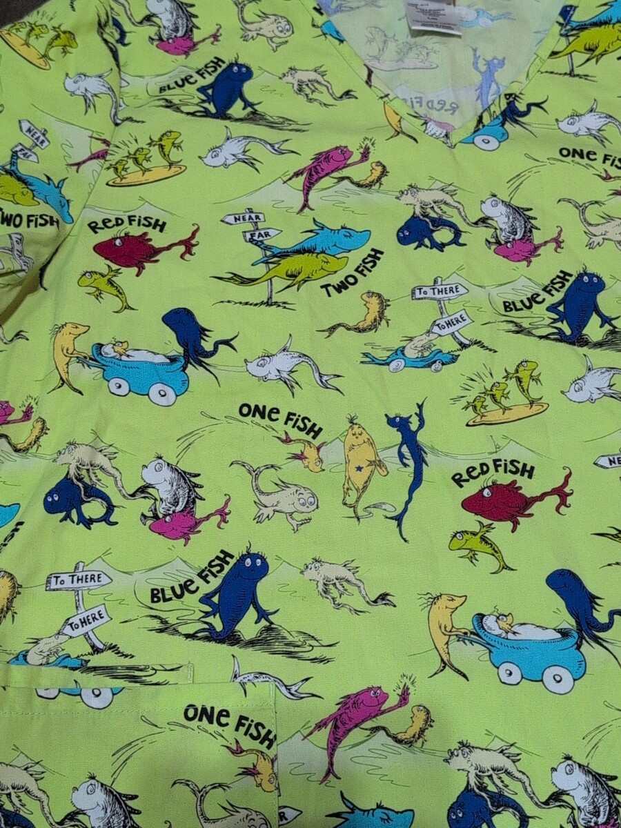 - Dr. Seuss One Fish Two Fish Scrub Top Size Large 3 Pockets Nurse Medical Uniform