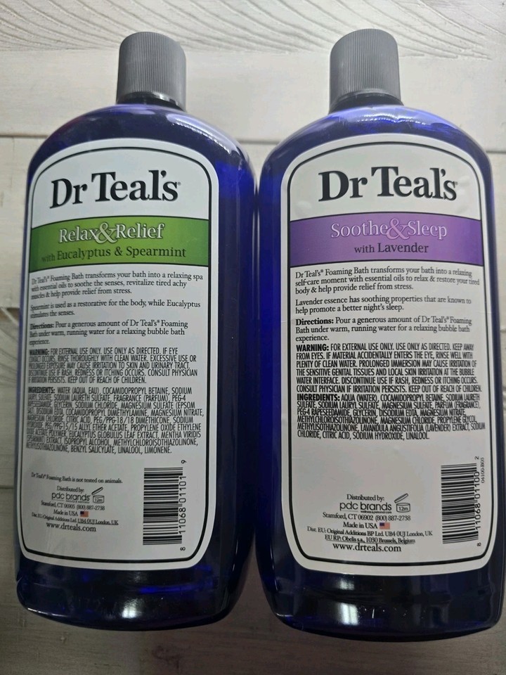 - Dr. Teal's Foaming Bath, (1)Relax & Relief, 34oz & (1)Soothe & Sleep,34oz~Sealed