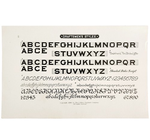 - Draftsmen's Styles Font Example 1899 Victorian Craft Drawing Ephemera DWKK20