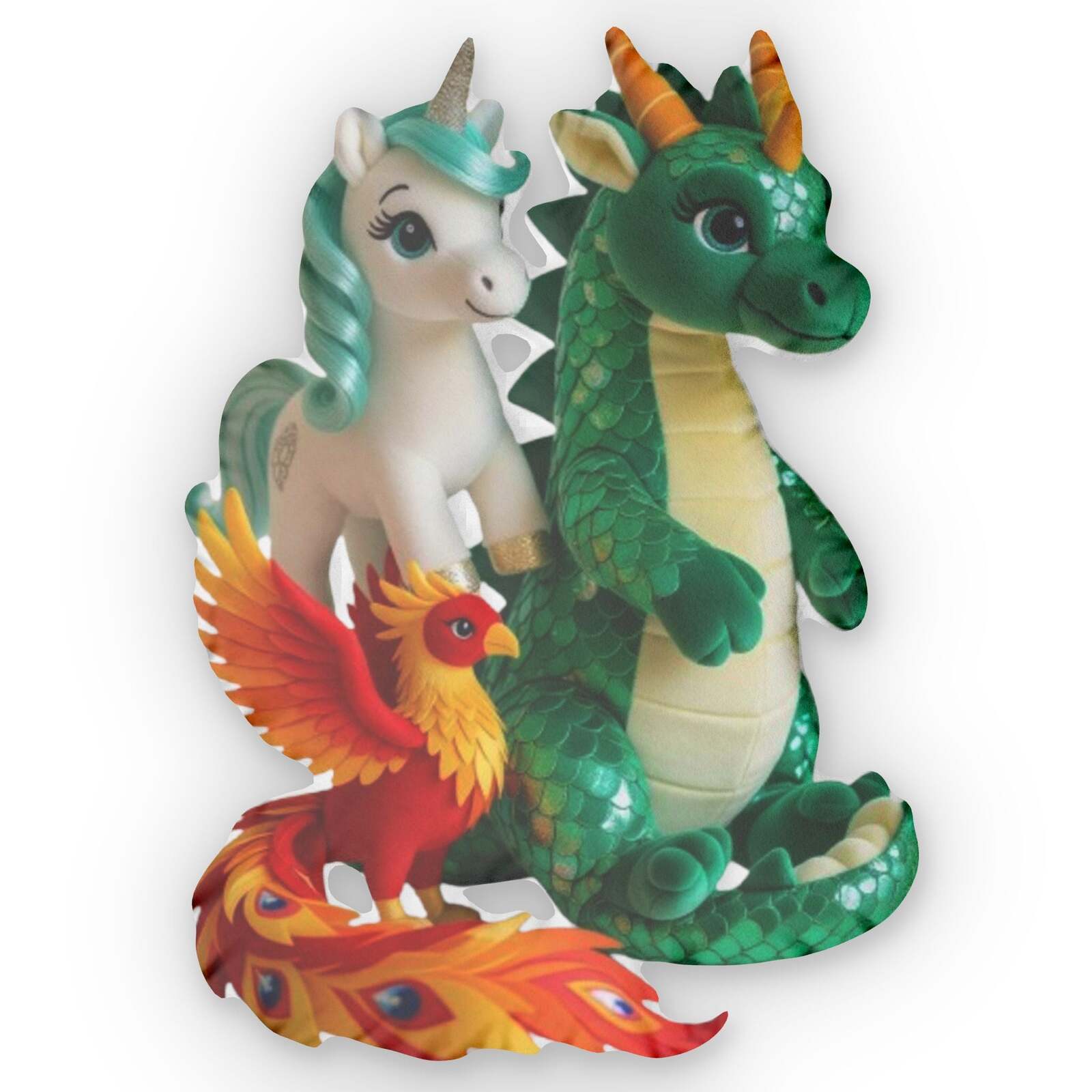 - Dragon, Unicorn, and Phoenix - Fantasy Creature Plushie, Shaped Pillow