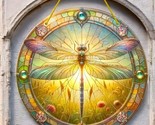 - Dragonfly Faux Stained Glass Acrylic Art Suncatcher – 8in 2D Round Panel Decor