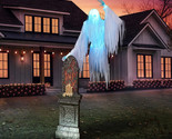 - DRAMATIC 9' FLOAT GHOST SKELETON OVER LED RIP TOMBSTONE ANIMATRONIC YARD HAUNT