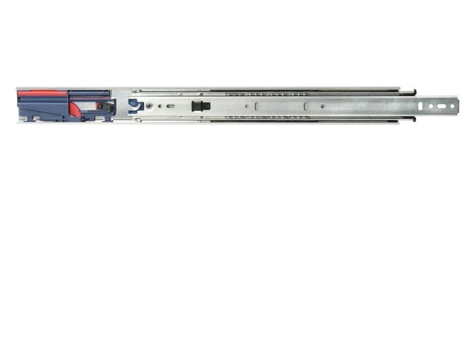 This drawer slide is used by cabinetmakers, contractors, and DIYers in kitchen renovations, office furniture builds, garage workshops, and utility storage systems where durability, smooth motion, and quiet operation are essential. It?s commonly installed in base cabinets holding cookware, tools, or files?applications requiring full access and heavy load support. The soft-close feature enhances user experience in high-traffic areas like family kitchens or professional workspaces, while the lever disconnect simplifies maintenance or reconfiguration. Designed to meet industry standards for cabinetry hardware, it offers commercial-grade reliability in both residential and light-commercial settings?delivering long-term performance with minimal wear, even under daily use.