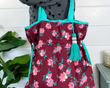 - Drawstring Cotton Market Tote Shopping Bag Maroon Pink Aqua