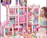 Dreamhouse Playhouse 4 Story - 4-16 Rooms Doll House with 4 Dolls Toy Figures