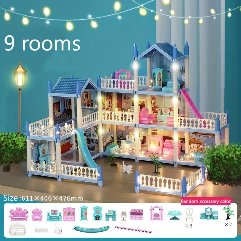 4-Story DIY Dollhouse Playset for Girls ? 11 Rooms, Dolls Accessories | Ages 3+