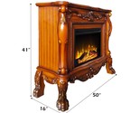 Add warmth and comfort to any room in your home with the impressive Dresden fireplace in a cherry oak finish. The grand fireplace features floral moldings throughout the piece. Sitting on carved claw feet or added elegance. The fireplace features a touch panel, remote control, and a timer for ease of use.