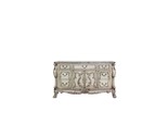 Elegant yet lightheartedly playful, this Dresden dresser is donned in an amiable vintage bone white finish with hand-applied burnish over the many layers of stains and finishes that are manually rubbed on, providing depth and character to this piece. The Rococo style is candidly represented in the classic ornamental features of this dresser, with the carefully chosen inlay, plentiful decorative scrolled moldings, and ample size worthy of a main bedroom. The seven drawers and cabinet space provide plenty of storage for clothes and accessories.