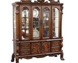 Features: Storage: Hutch 4 Glass Doors (2 Glass Shelves Inside Mirrored Back) Wood Construction, Wood Claw Leg Buffet: 4 Drawer, 2 Wooden Doors (1 Shelf Inside), Top Door Size: 14" x 45"H; Base Door Size: 16" x 15"H; Drawer Size: 14" x 8"H; Leg Size: 11"H Clearance between floor Apron Base: 6" H; Back Mirror Dimensions: Side 17.2" x 15.3" x 0.12", Middle: 29" x 15.3" x 0.12" Set Includes: One (1) Hutch Buffet