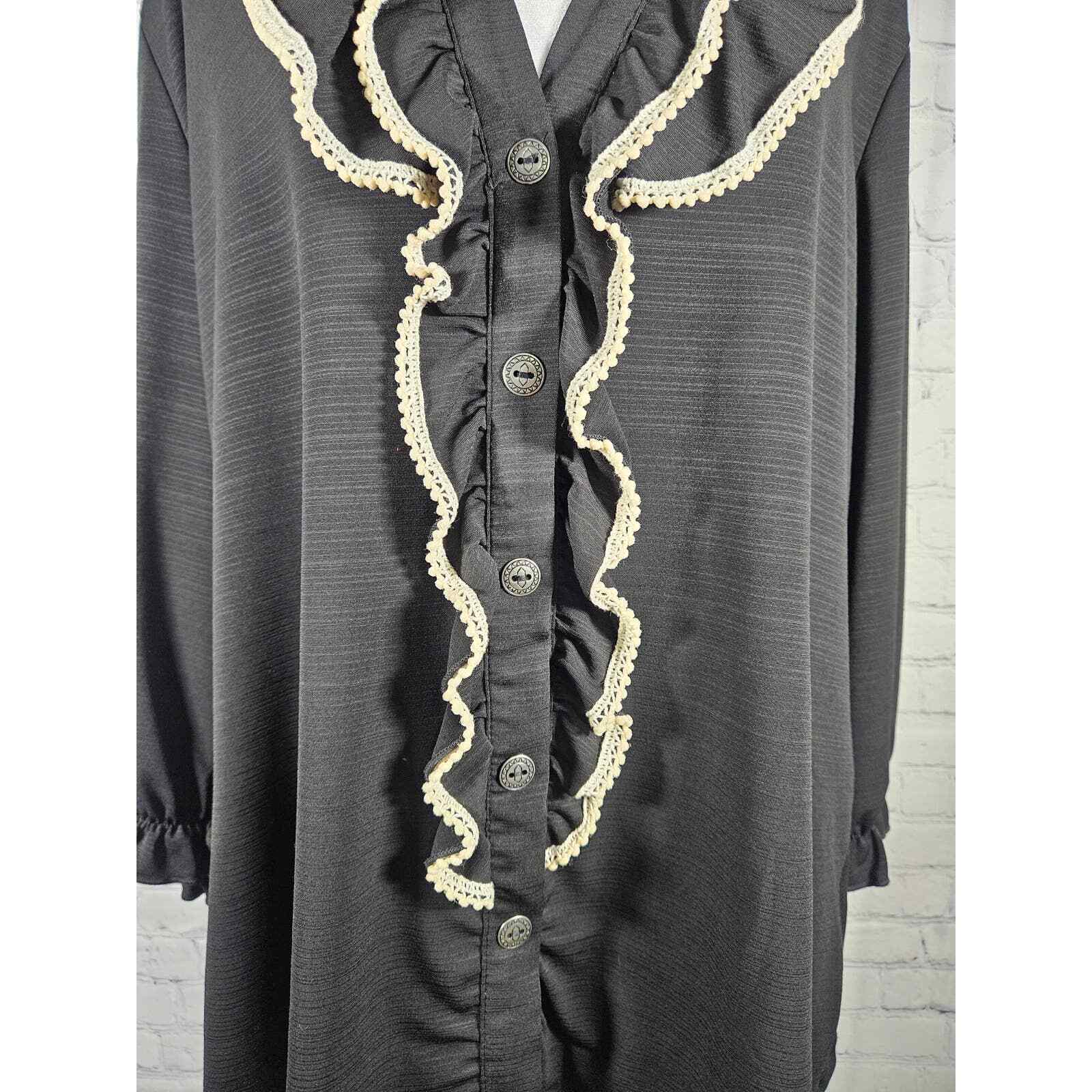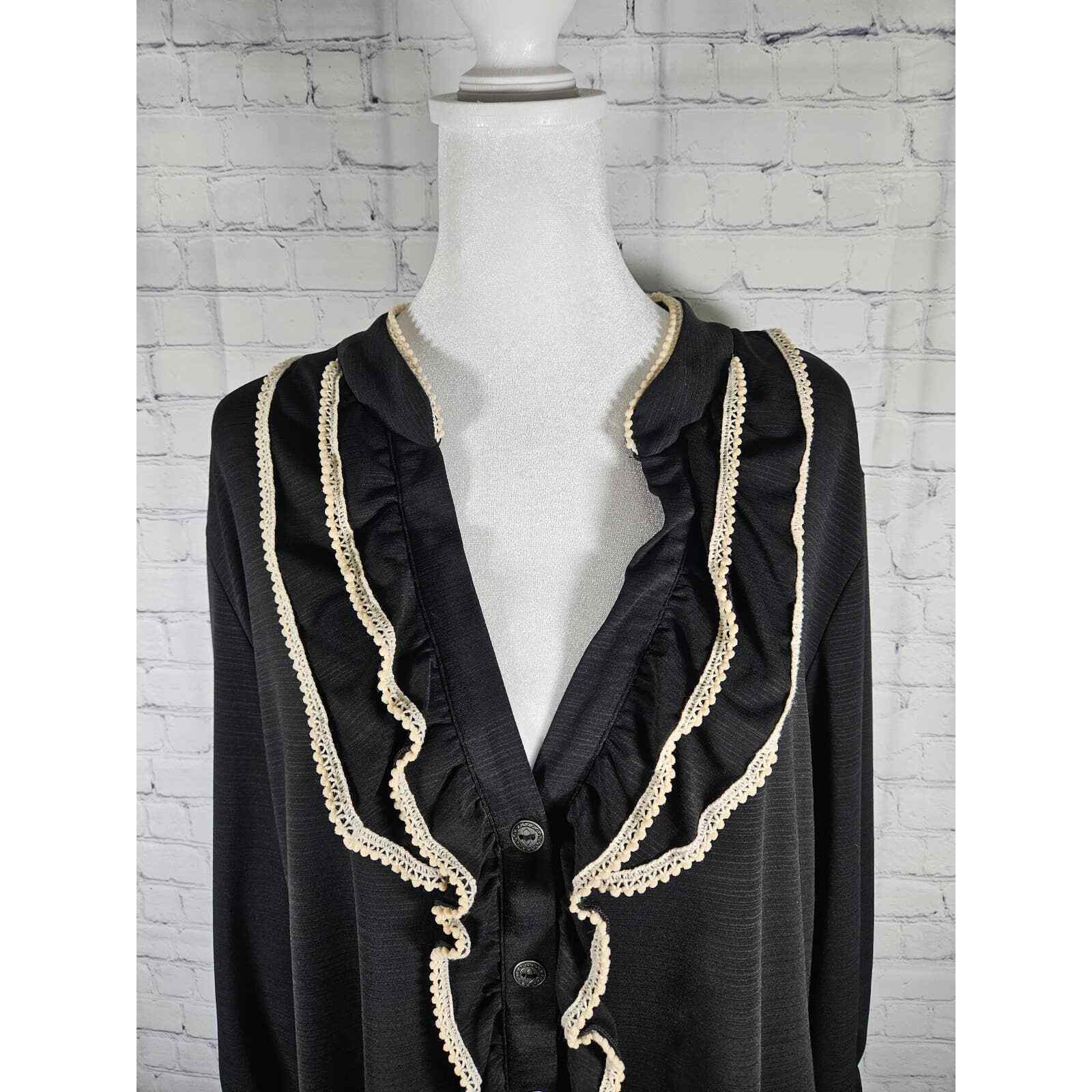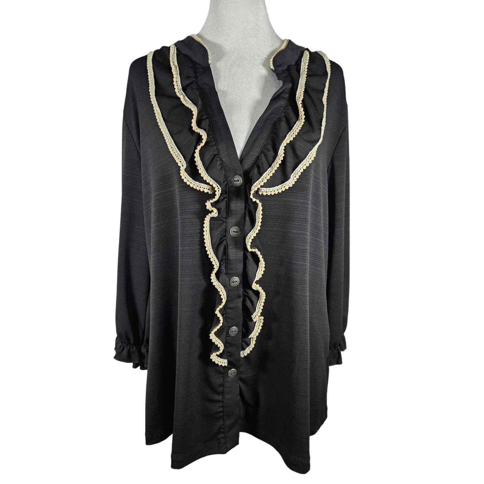 - Dress Barn Women's Top Black White Ruffles Size 1X Soft Stretchy Button Up