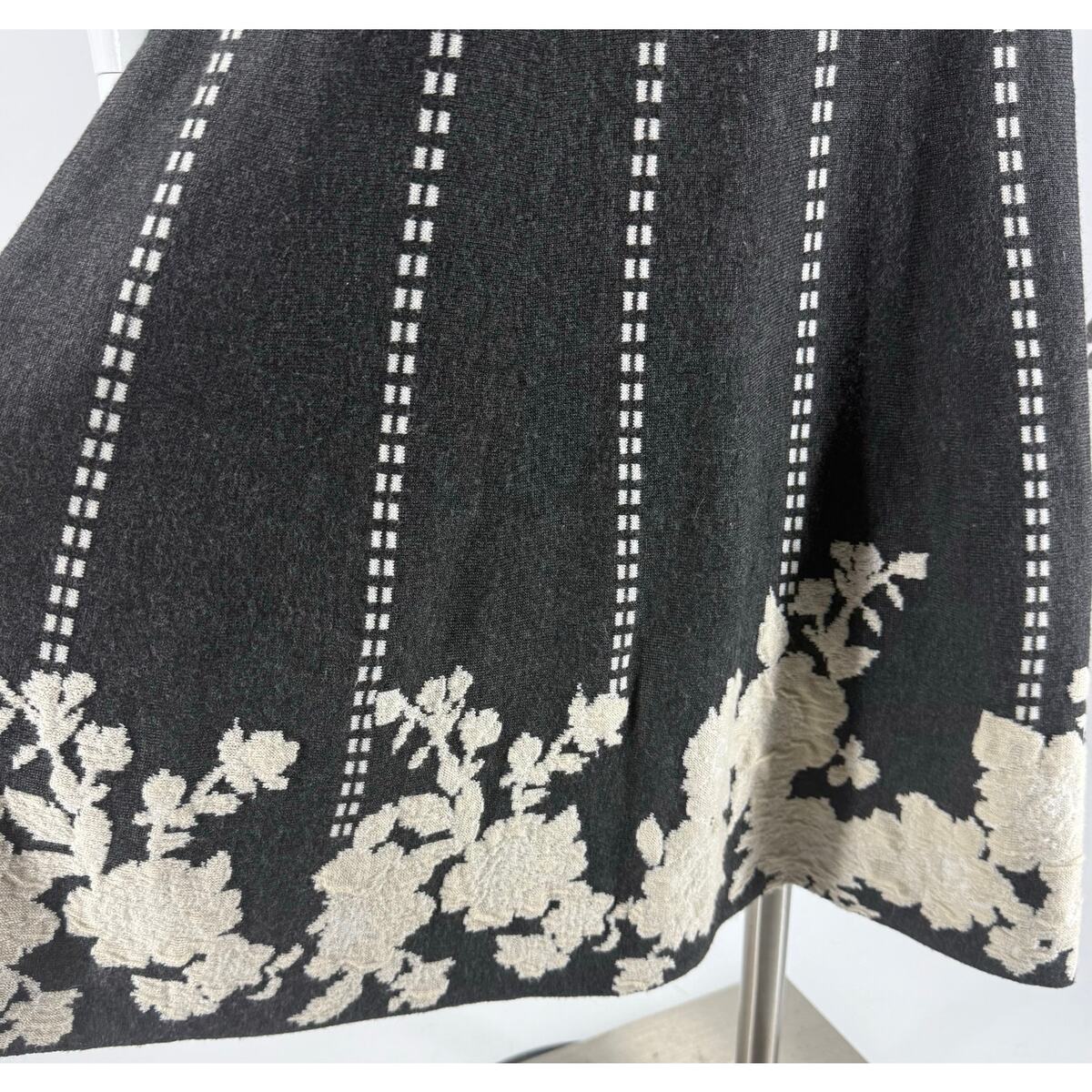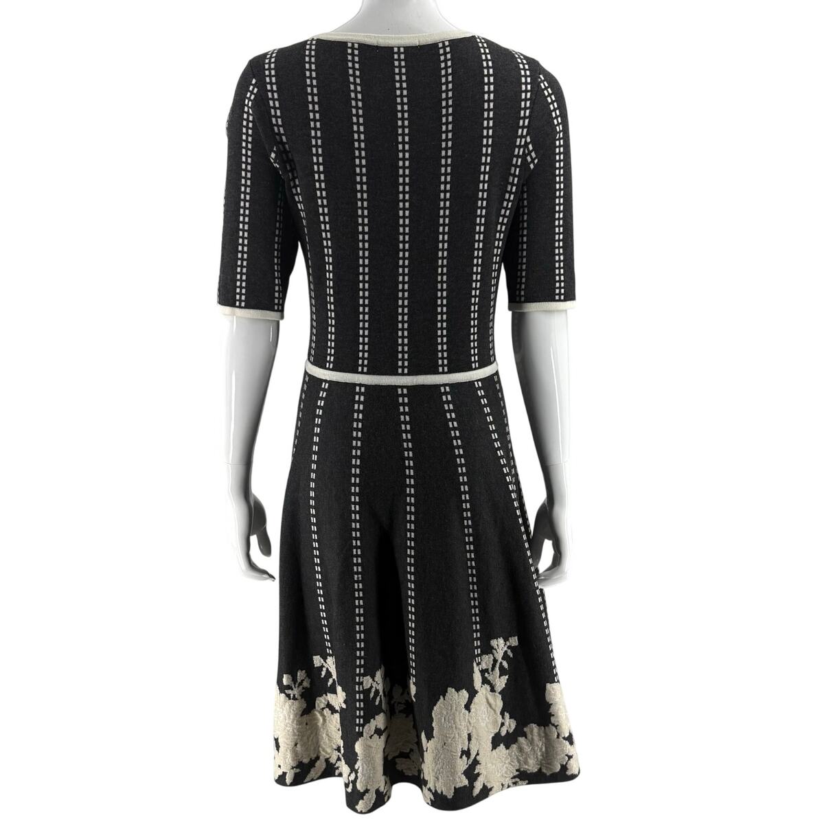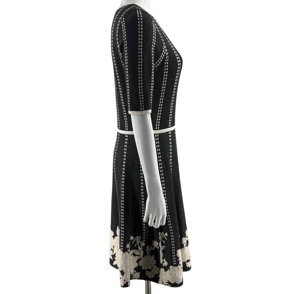 - Dress Barn Womens Sweater Dress Size M Gray Cream Half Sleeve Fit Flare Floral