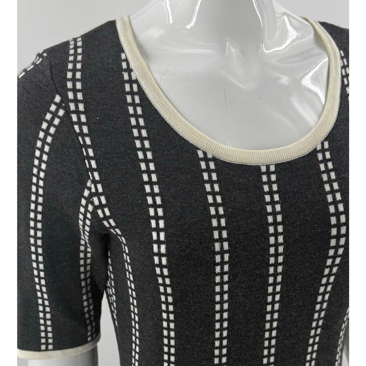 Dress Barn Womens Sweater Dress Size M Gray Cream Half Sleeve Fit Flare Floral