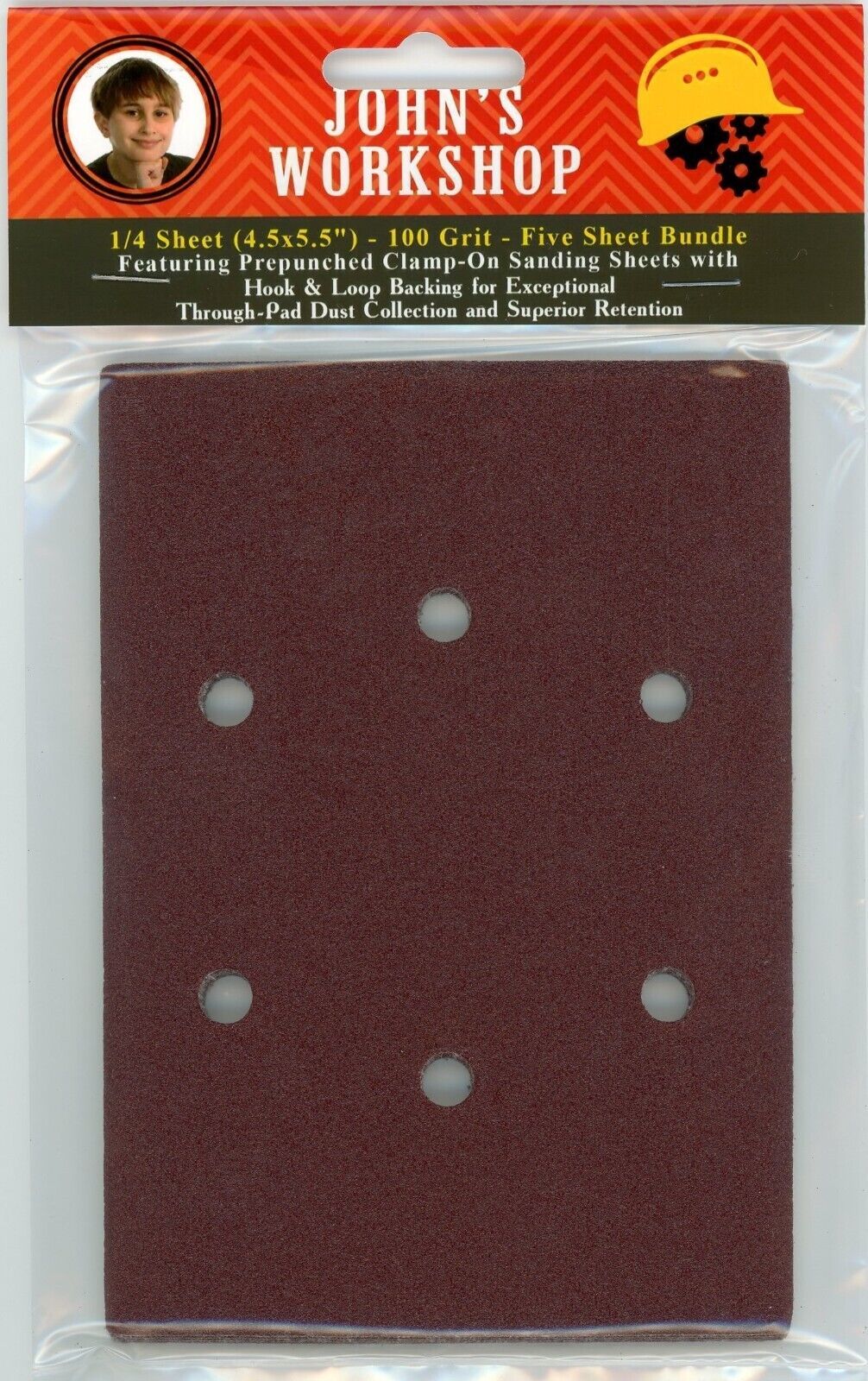 Drill Master 61509 - 1/4 Sheet - 100 Grit - PrePunched - 5 Sandpaper Bundle