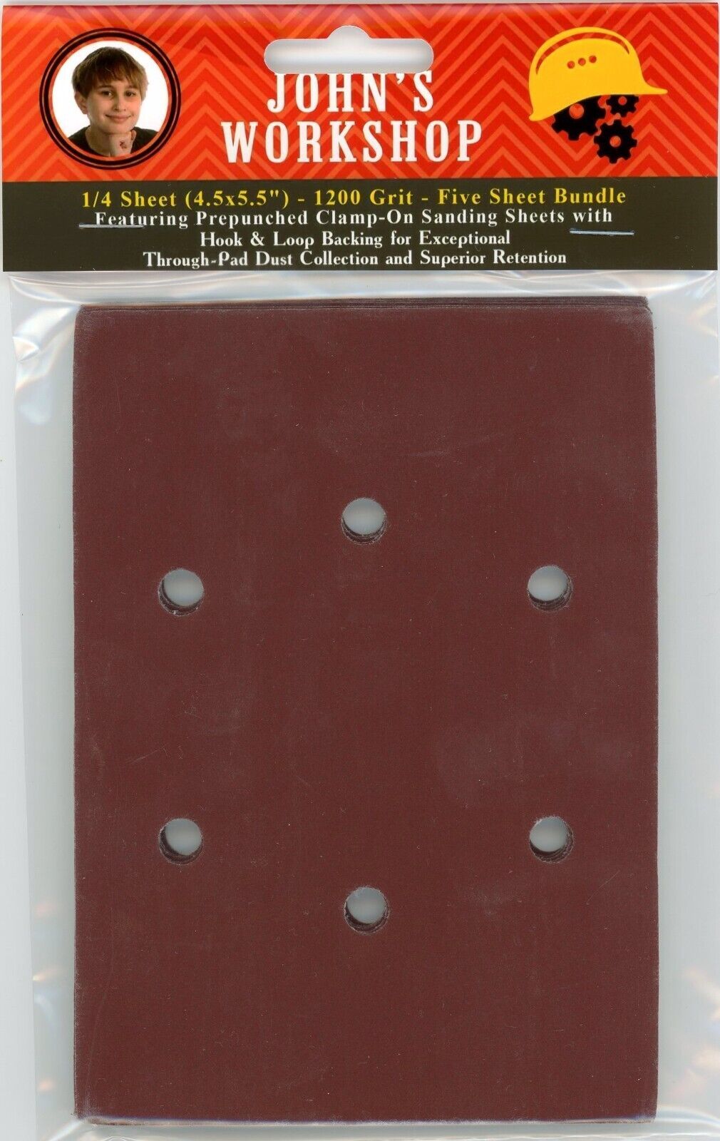 Drill Master 61509 - 1/4 Sheet - 1200 Grit - PrePunched - 5 Sandpaper Bundle