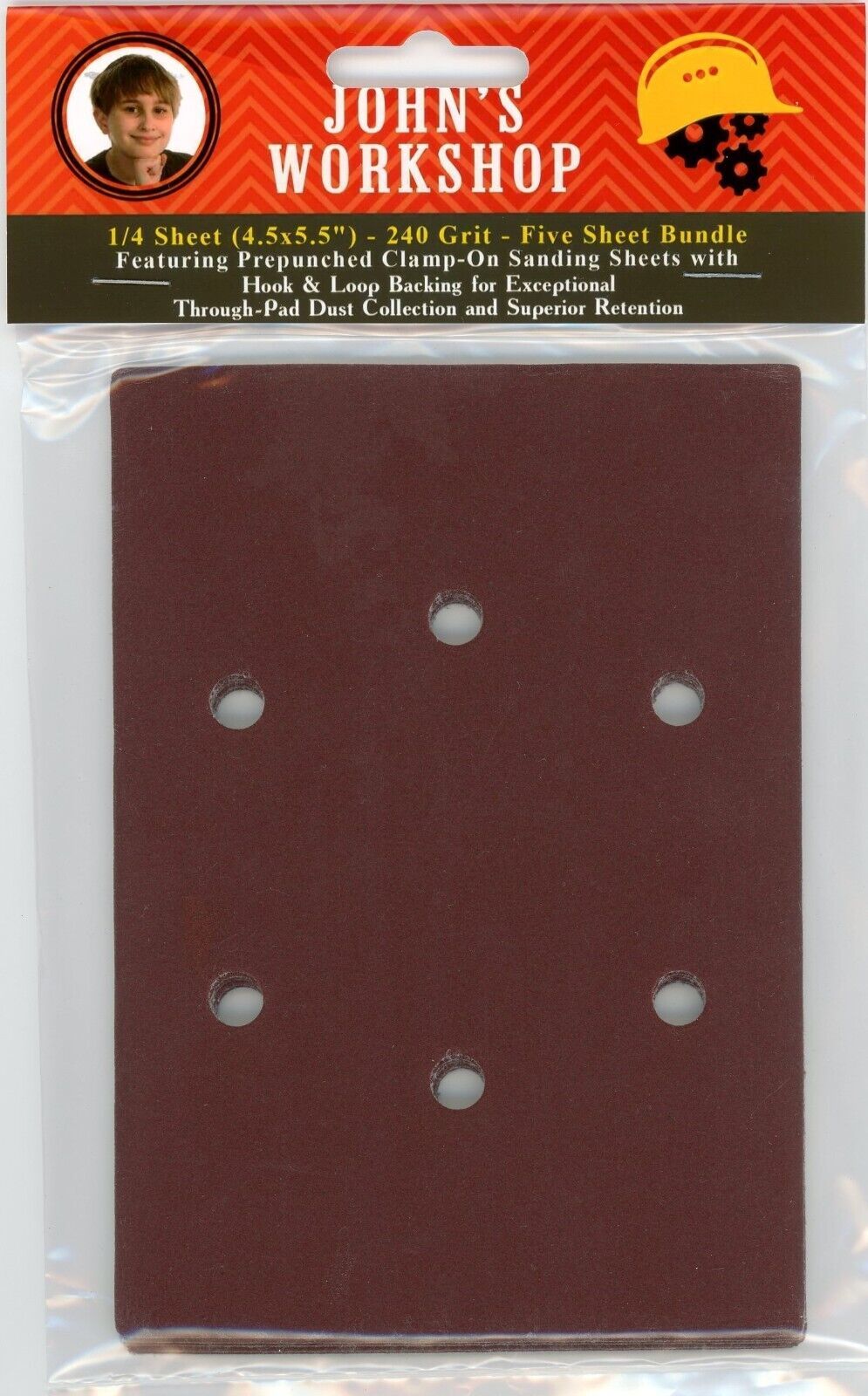 - Drill Master 61509 - 1/4 Sheet - 240 Grit - No-Slip - 5 Sandpaper Bundle