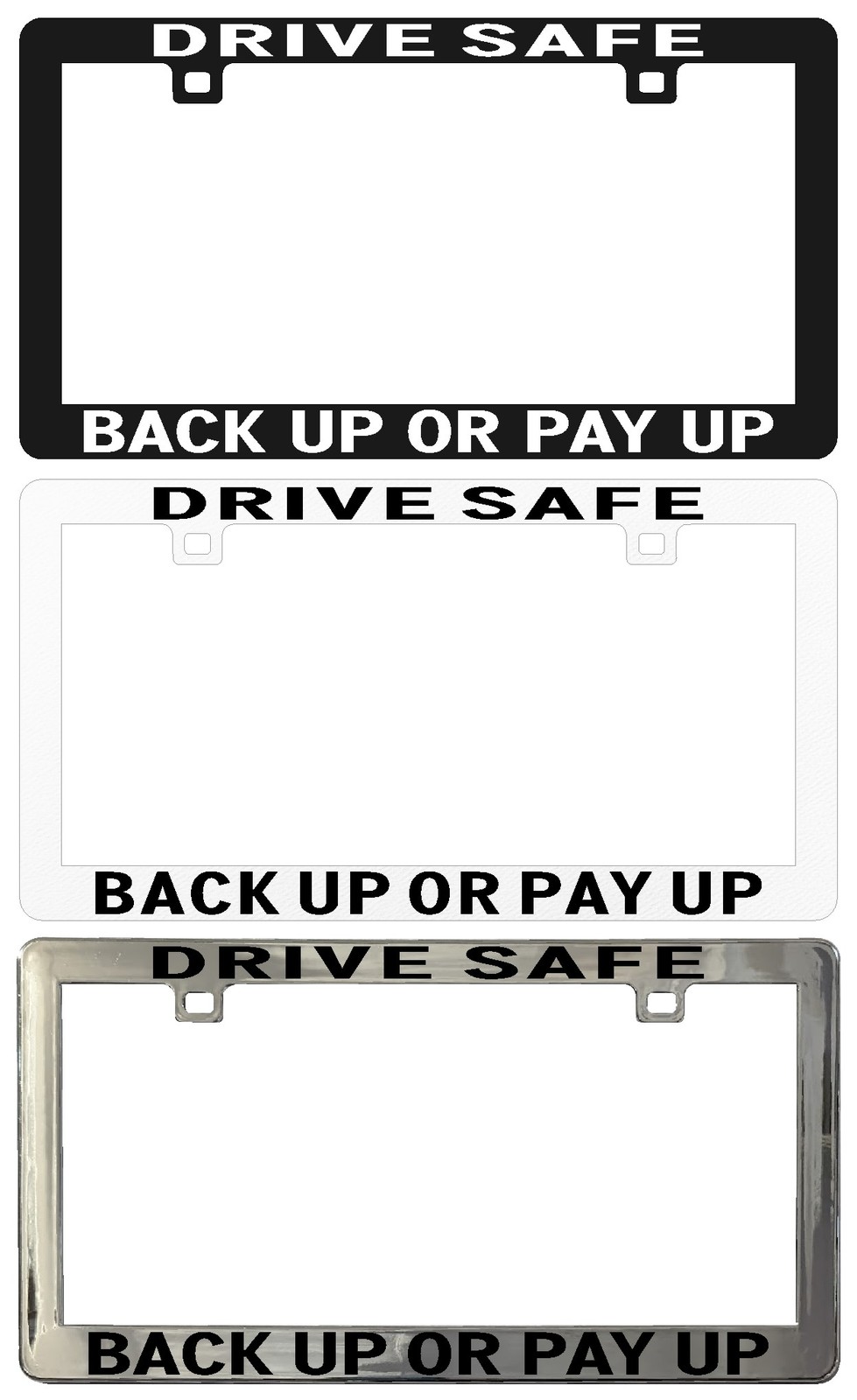 - Drive Safe Back Up Or Pay Up Assorted Legal License Plate Frame