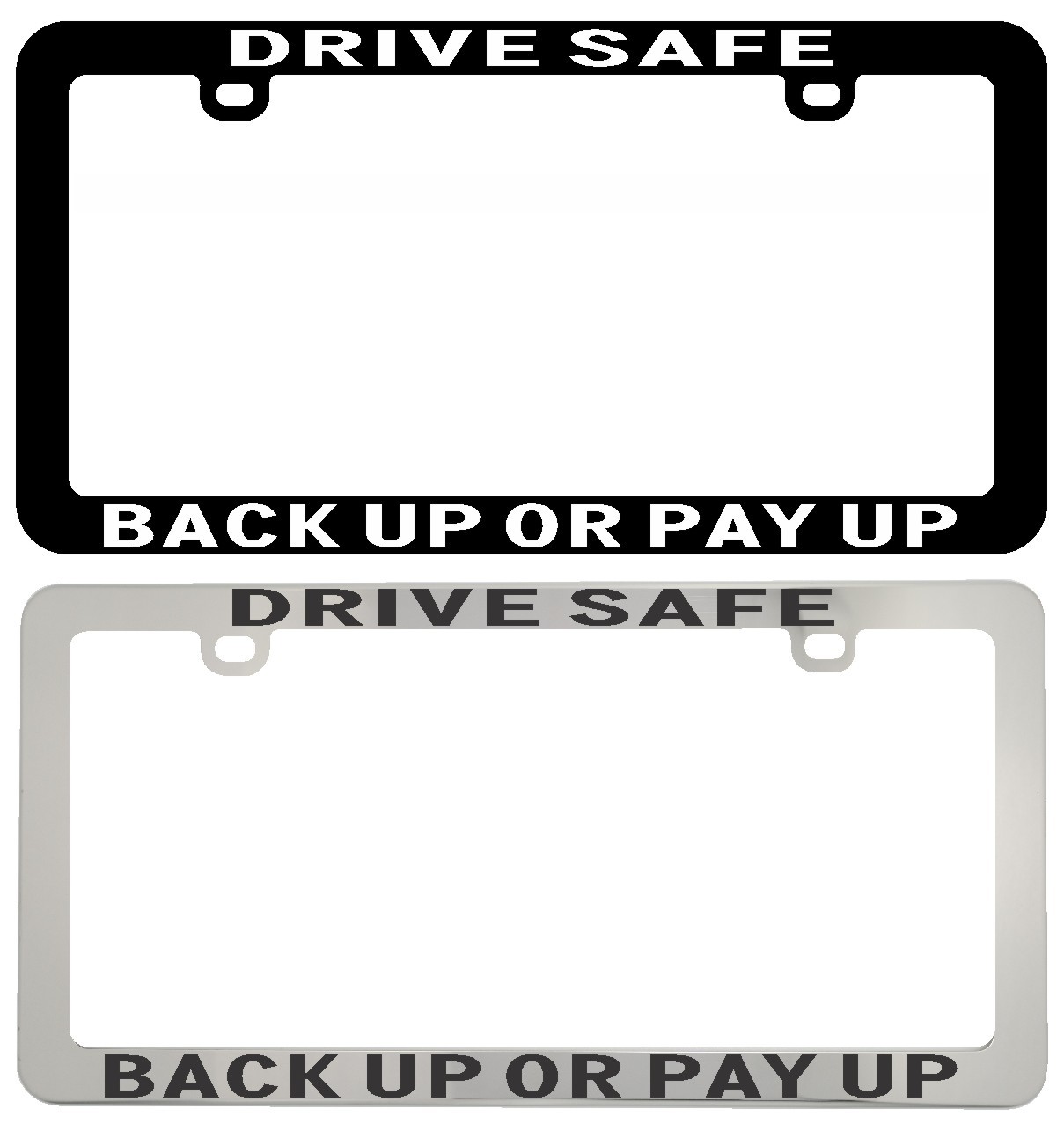 - Drive Safe Back Up Or Pay Up Assorted Legal License Plate Frame