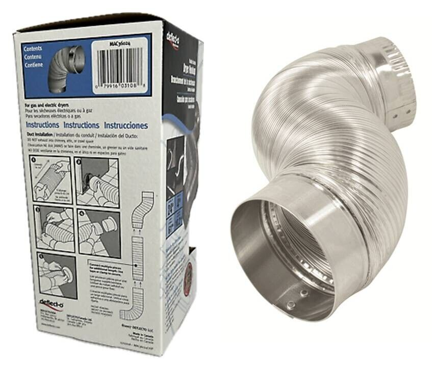 Semi-rigid duct with integrated male and female connectors, Easy to install without clamps, tools or tape. Extends up to 24 inch. Use for kitchen or bathroom venting and forced air distribution.