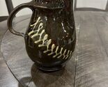 - Duel Art Pottery Brown Pitcher Glazed Zigzag Design Studio Handmade Signed