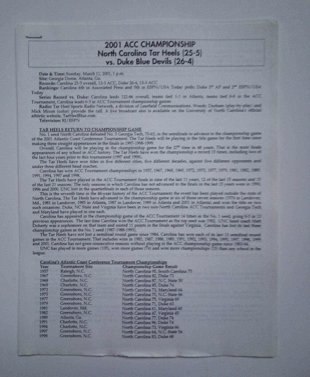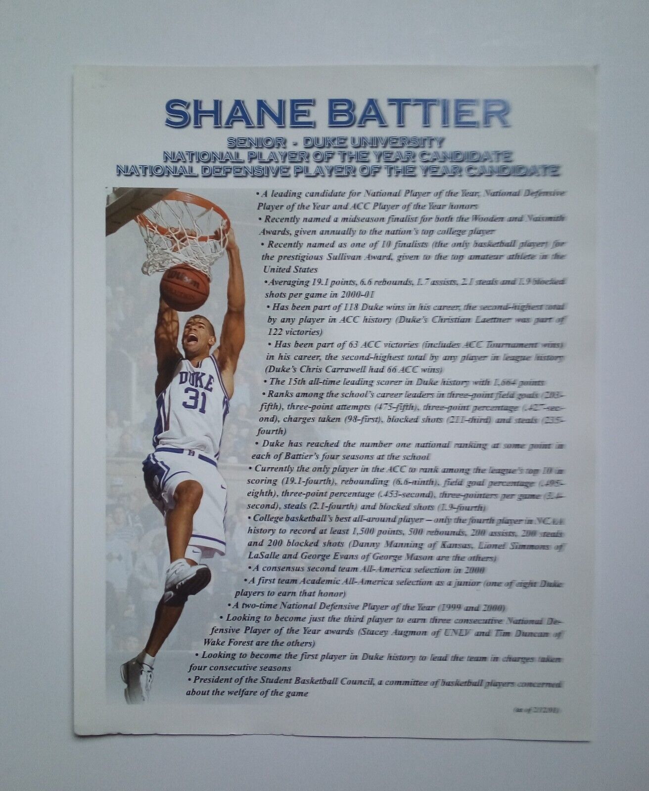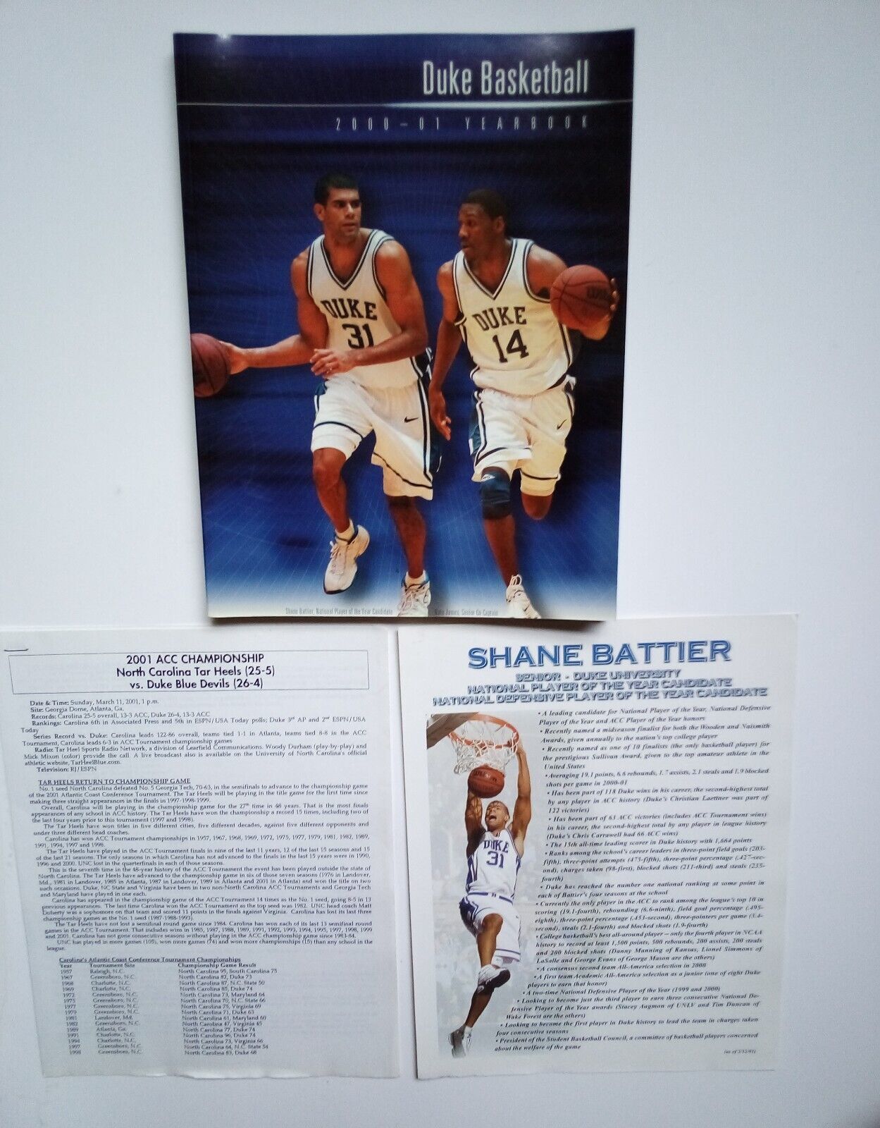 Duke Basketball Yearbook 2000-2001 glossy paperback with 2001 ACC Championship write up and Shane Battier info Inserts. All in excellent condition and securely shipped.