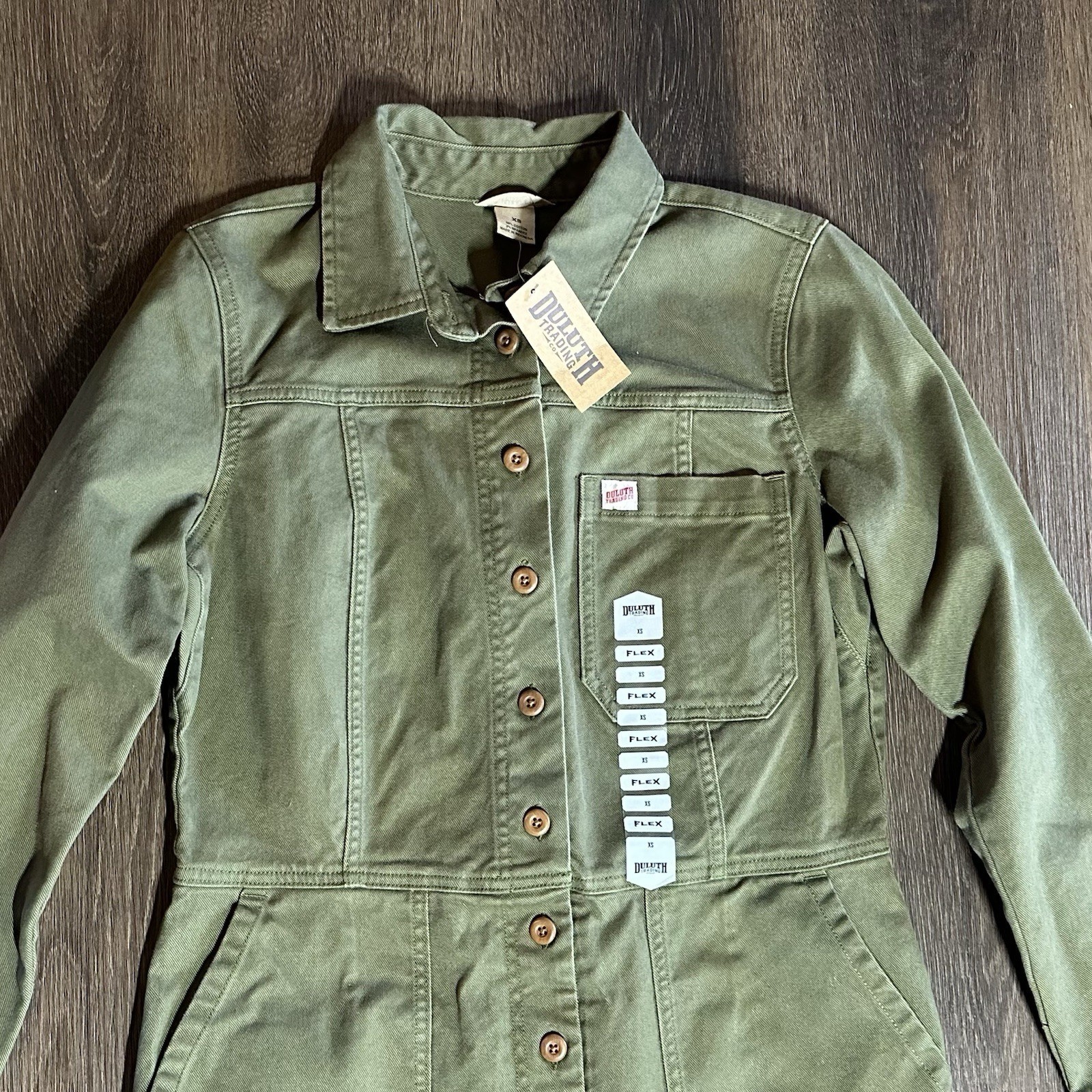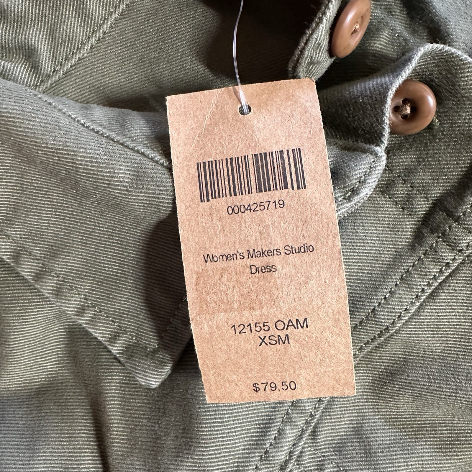 - Duluth Trading Co Womens XS Makers Studio Dress Olive Green Pockets Long Sleeve