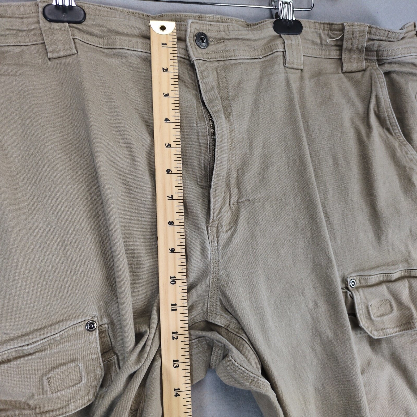 Features: Relaxed Fit, Straight Leg, Mid Rise, Cargo Pocket, Cargo Style, Easy Care, Pockets, Stretch, Belt Loops, Crouch Gusset, Solid Pattern, 44 in Measured Waist, 28 in Inseam, Button Zip Closure, Logo, Machine Washable
