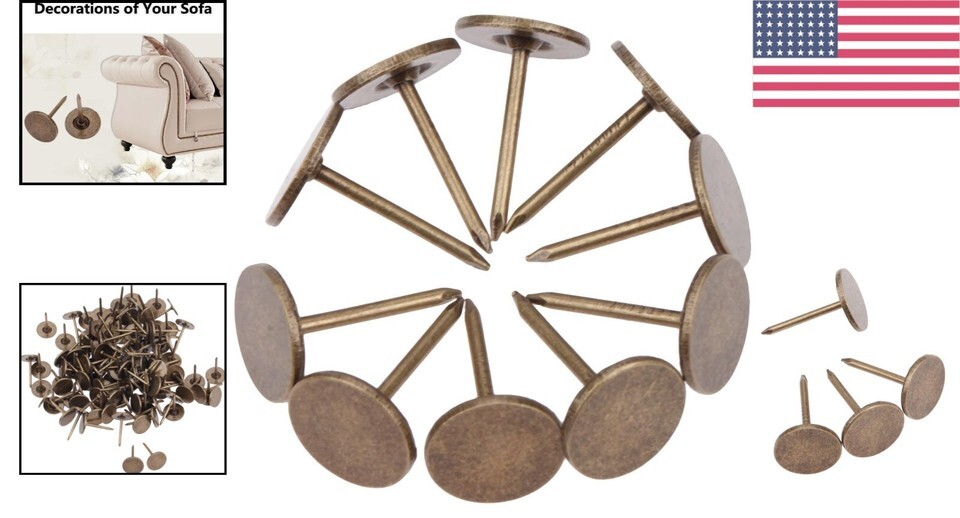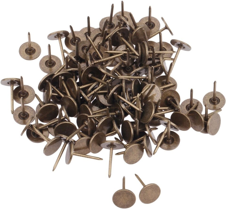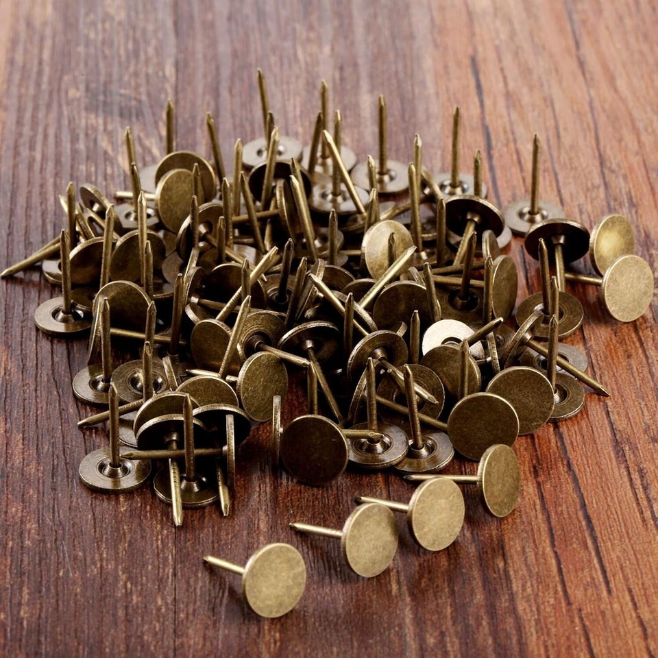 - Durable 100 Pc Antique Brass Flat Upholstery Nails - Perfect for DIY Crafting