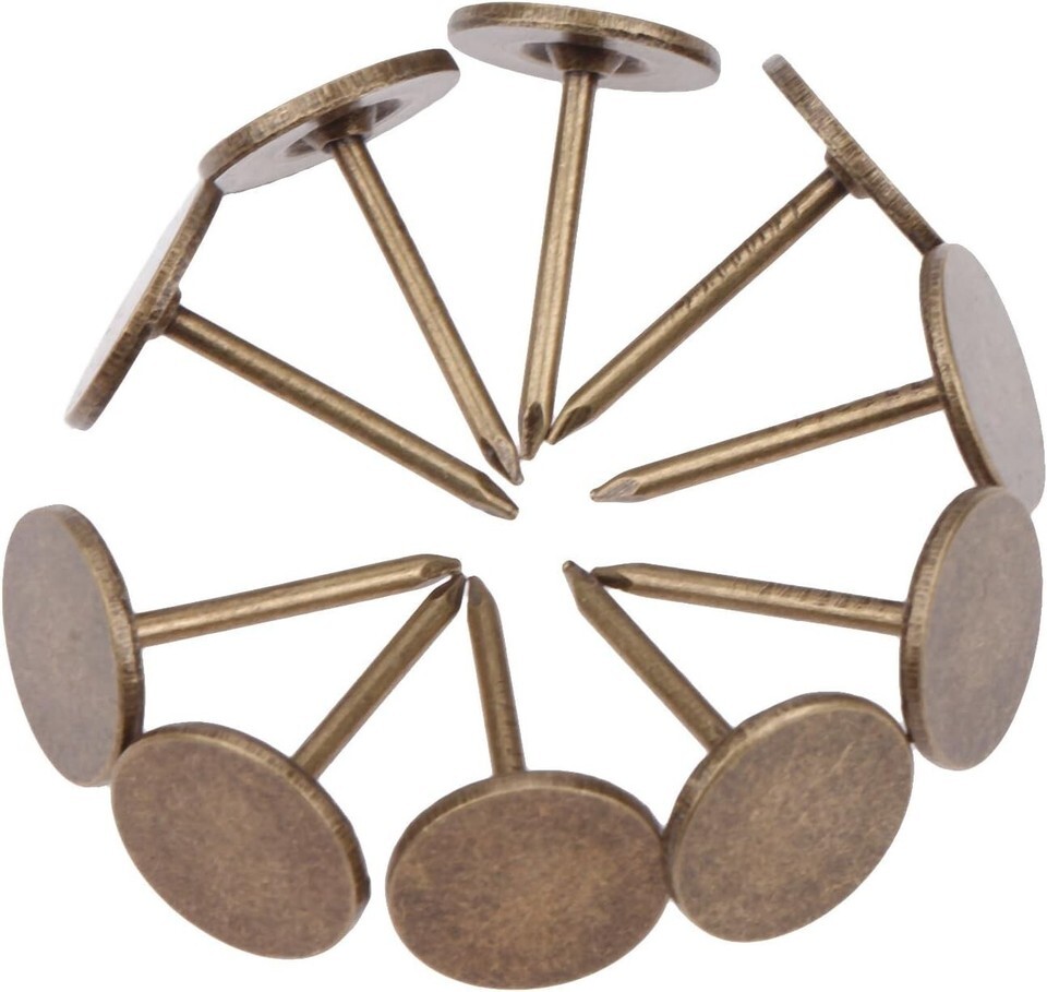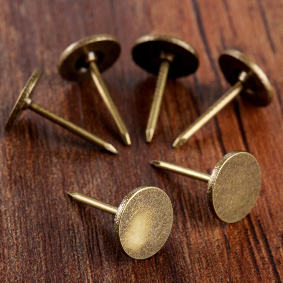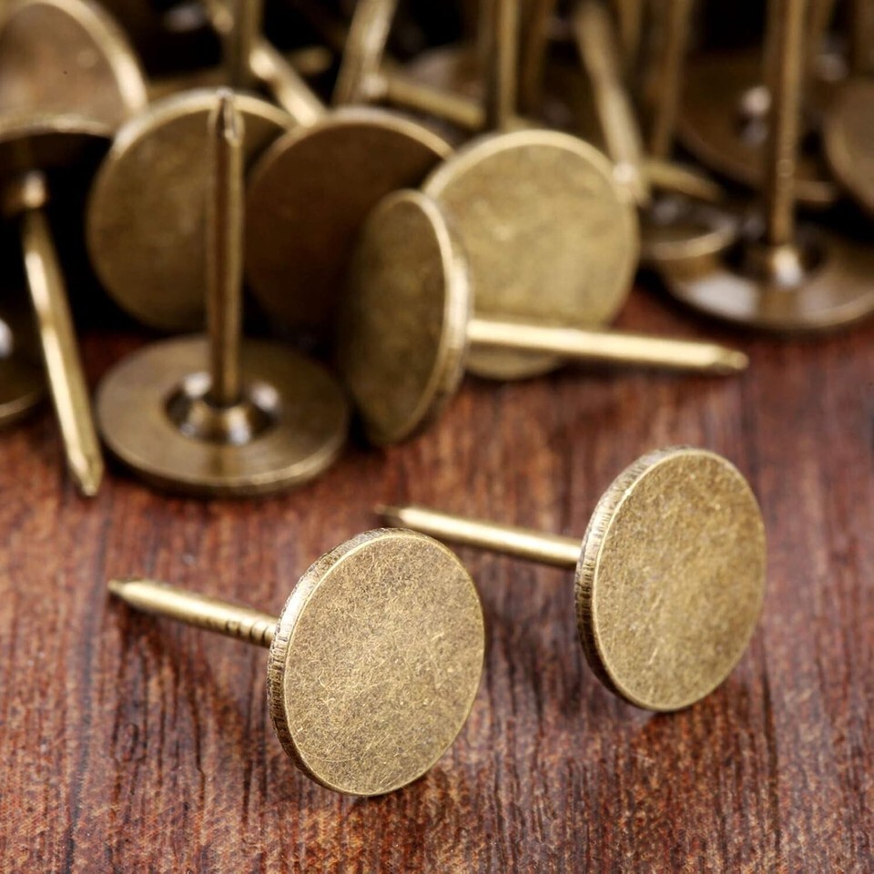 Durable 100 Pc Antique Brass Flat Upholstery Nails - Perfect for DIY Crafting