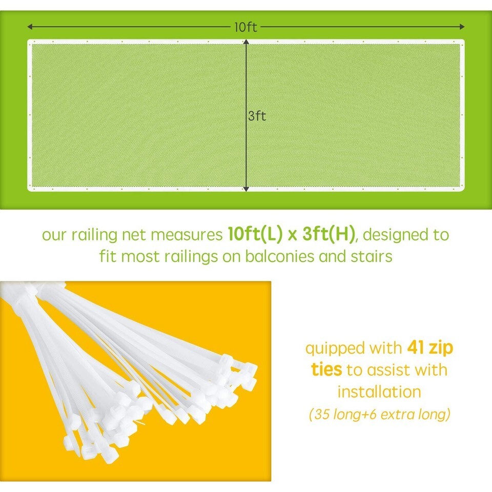 Net Dimension: Measures 10ft (L) x 3ft (H), perfectly suitable for most banisters, stair railings, balconies, and patios.