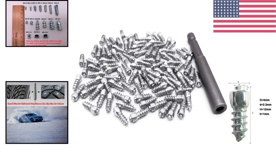 - Durable 12mm Frost Resistant Tire Studs with Installation Tool - 100 Pieces