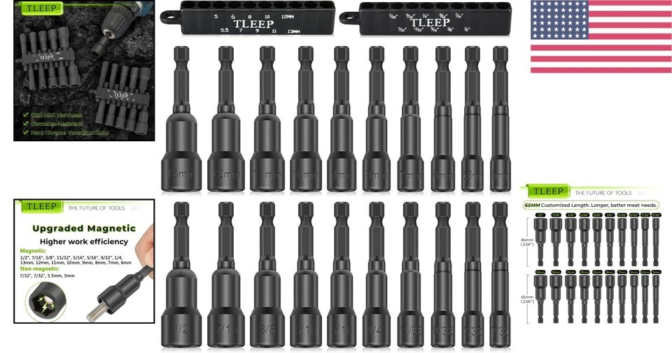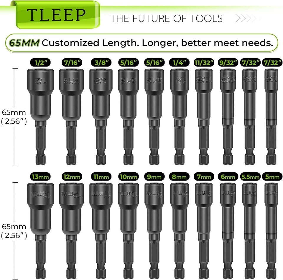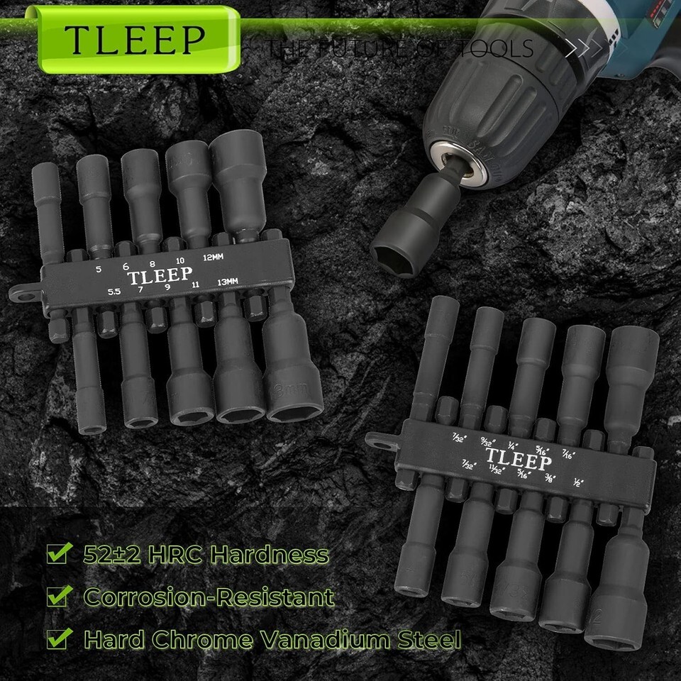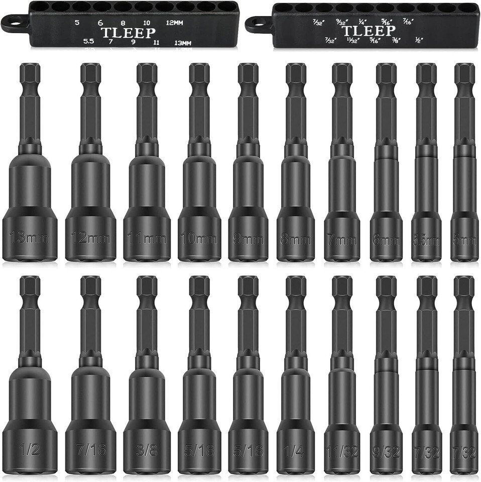 Comprehensive Size Range: Comes with 20 sizes including 10 standard impact nut drivers (1/2?, 7/16?, 3/8?, and more) and 10 metric sizes (13mm, 12mm, 11mm, and more).