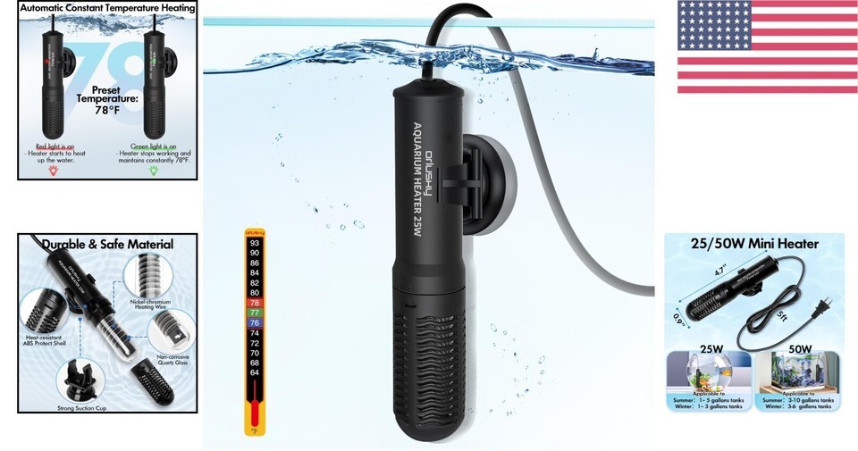 - Durable 25W Aquarium Heater: Ideal for 1-6 Gallon Freshwater & Saltwater Tanks