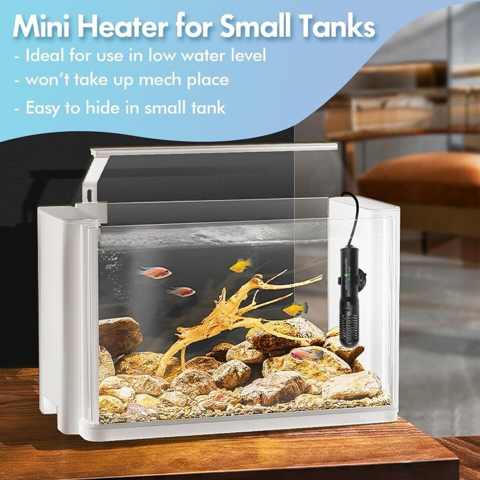 Powerful Heating: Suitable for 1-6 gallon tanks, this 25W heater measures just 4.7 inches, making it perfect for smaller setups. Easily hide it in low water levels without taking up much space.