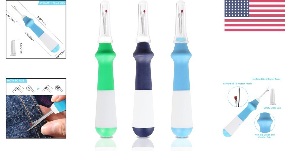 - Durable 3-Pack Seam Rippers with Non-Slip Grip - Perfect for Sewing and Crafting