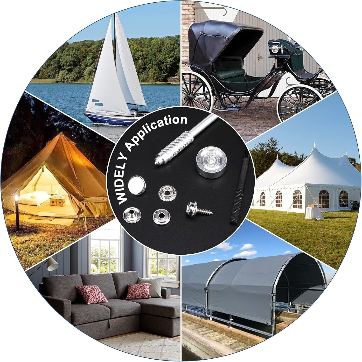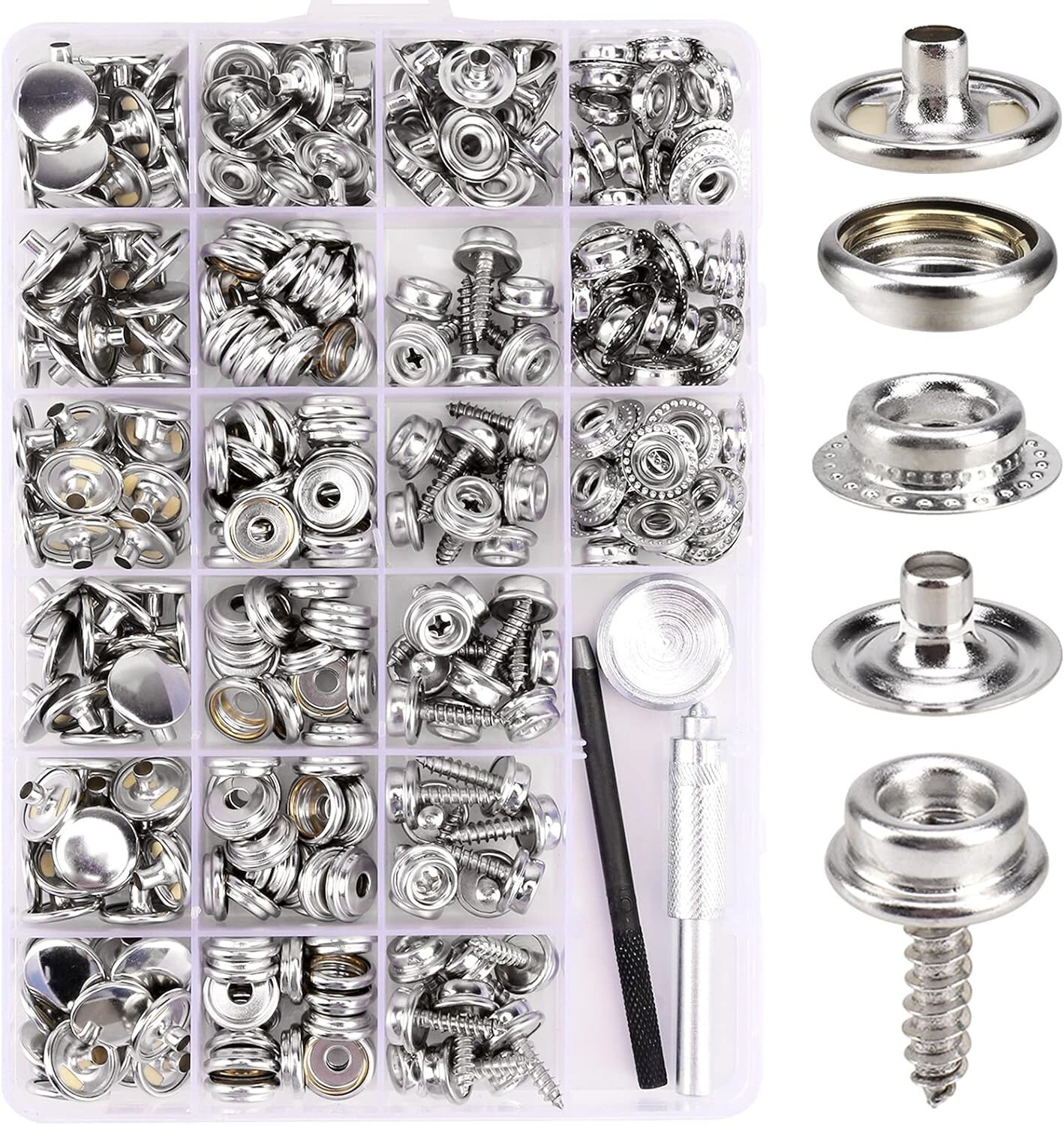 This comprehensive Canvas Snap Kit is perfect for DIY enthusiasts and professionals alike. Includes 90 caps, 90 sockets, fabric base studs, posts, solid base screw studs, a hole punch, setting tools, and a transparent storage box for easy organization. Made from durable marine-grade stainless steel, these snaps are suitable for both indoor and outdoor applications, such as tents, awnings, clothing, and furniture. Designed for simple installation, the kit features a hole punch and all necessary components to ensure a smooth process. Trust Meifuly?s commitment to quality and customer satisfaction.