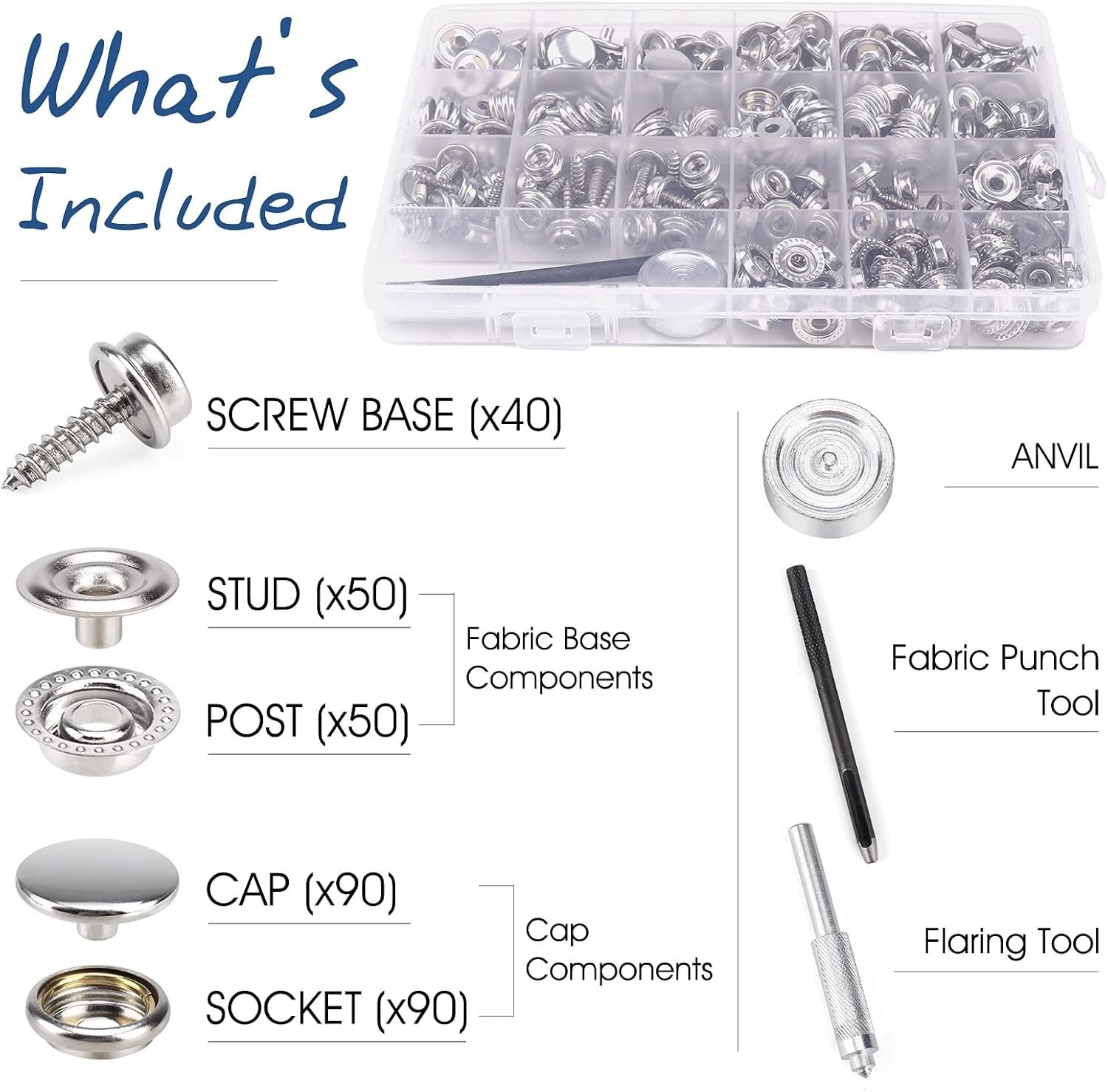 Durable 323-Piece Stainless Steel Canvas Snap Kit with Hole Punch & Tools