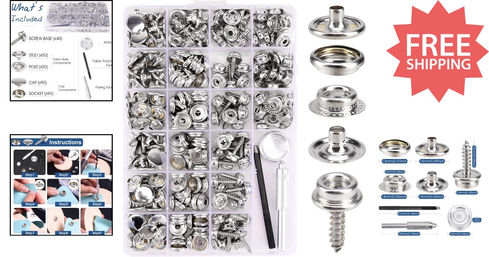 - Durable 323-Piece Stainless Steel Canvas Snap Kit with Hole Punch & Tools