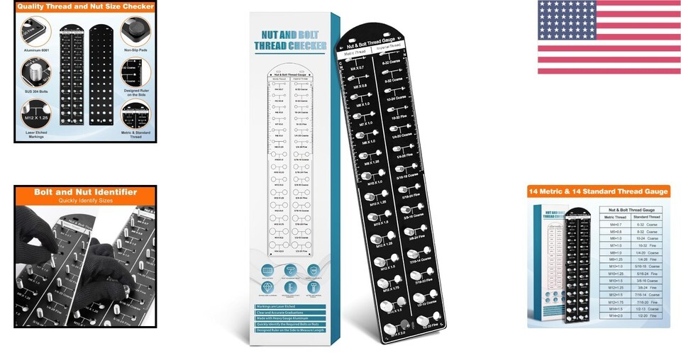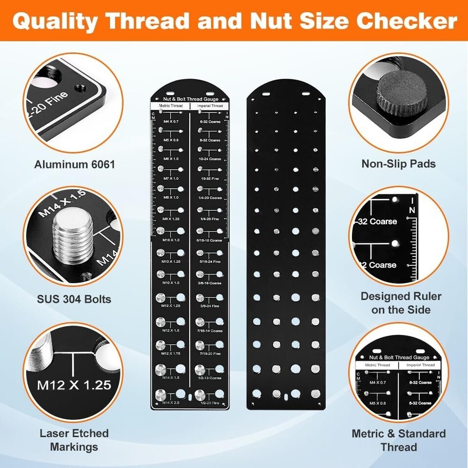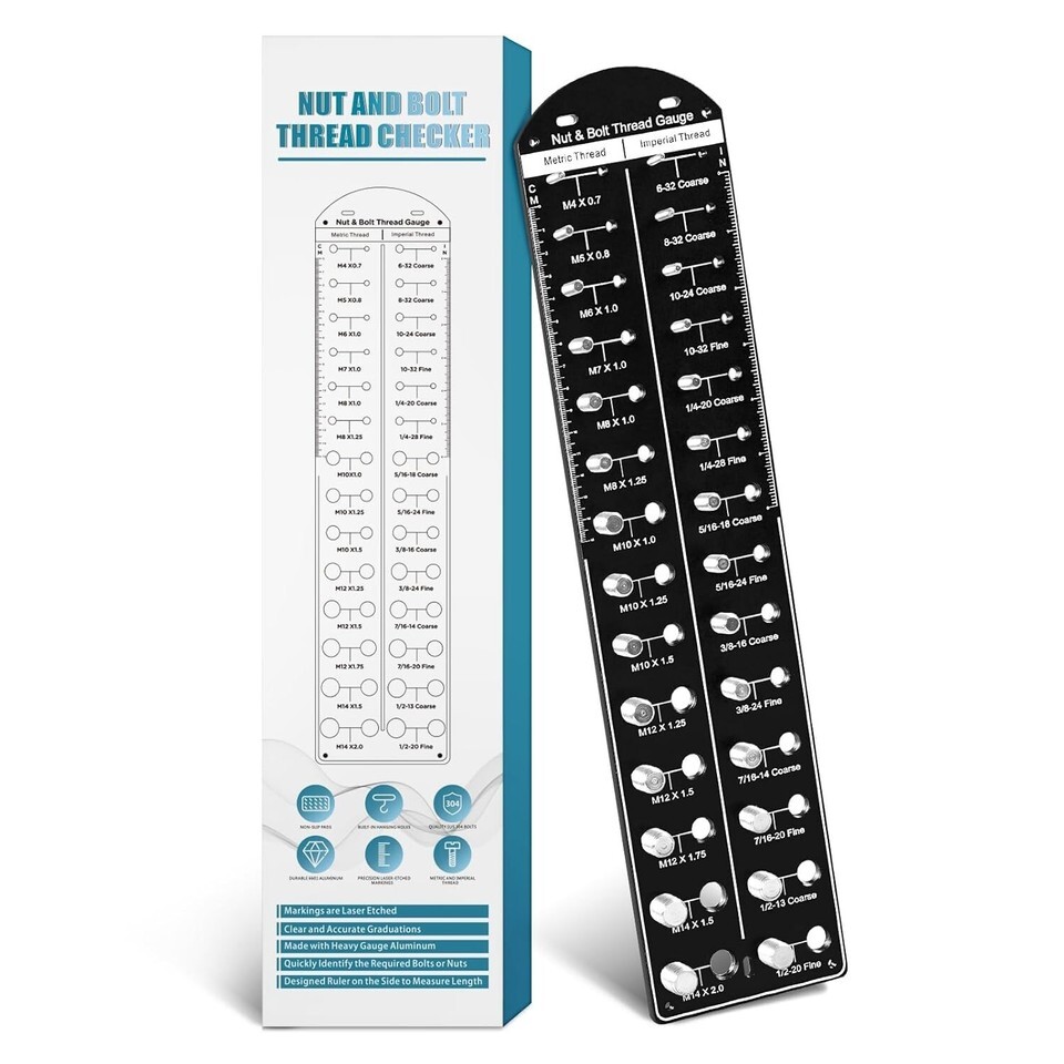 - Durable 6601 Aluminum Nut & Bolt Size Identifier with Laser-Etched Markings
