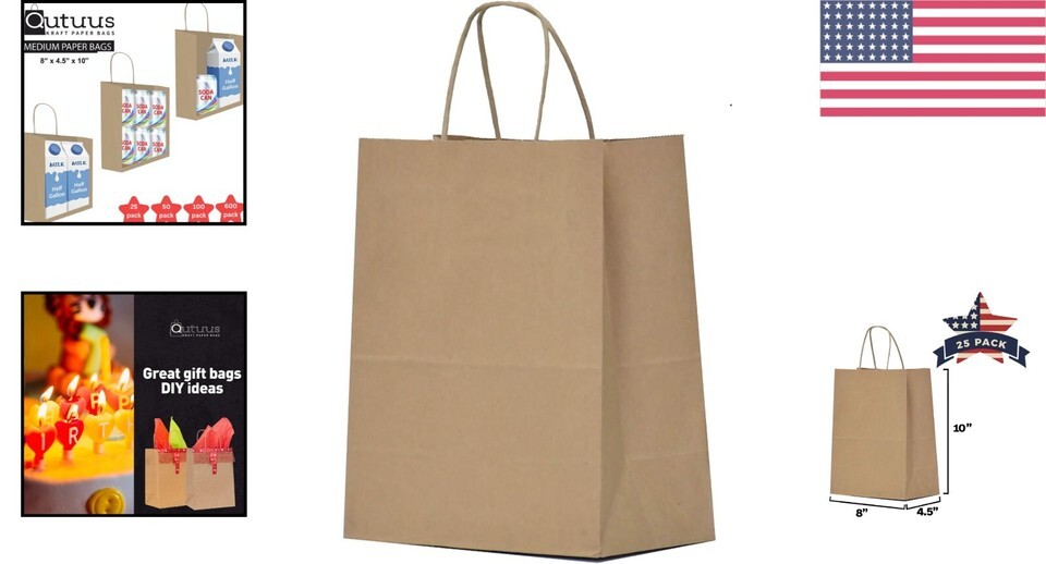- Durable 8x4.5x10 Kraft Paper Gift Bags with Twisted Handles - 25 Count Set