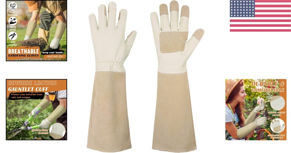 - Durable Elbow-Length Garden Gloves - Puncture Resistant Pigskin for Rose Pruning